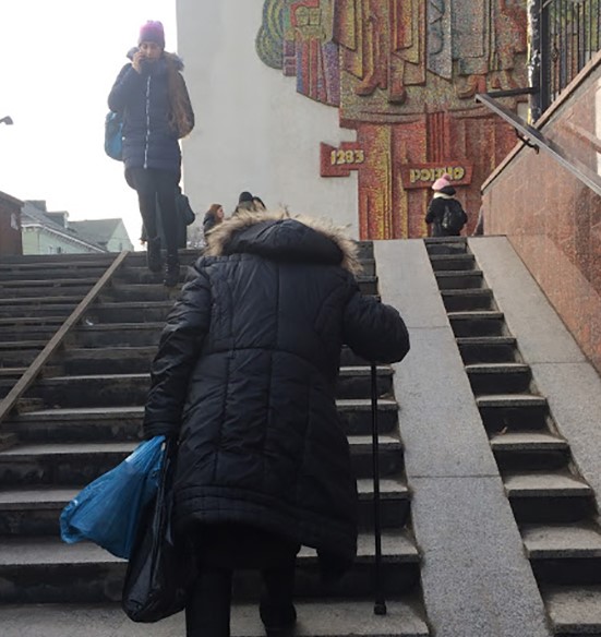 Як сходами до підземного переходу може спуститись/піднятись людина у інвалідному візку чи 70-ти річна бабуся, якій важко ходити через поважний вік? Чи легко спуститись, а потім піднятись молодому чоловіку, наприклад, з травмою коліна?