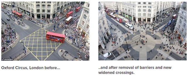 «CABE вважає, що пішоходам слід надати переваги у міському середовищі і розглядати їх як вершину транспортної ієрархії; ходьба як і раніше є основним способом пересування у містах, і планування наших вулиць має це відображати.