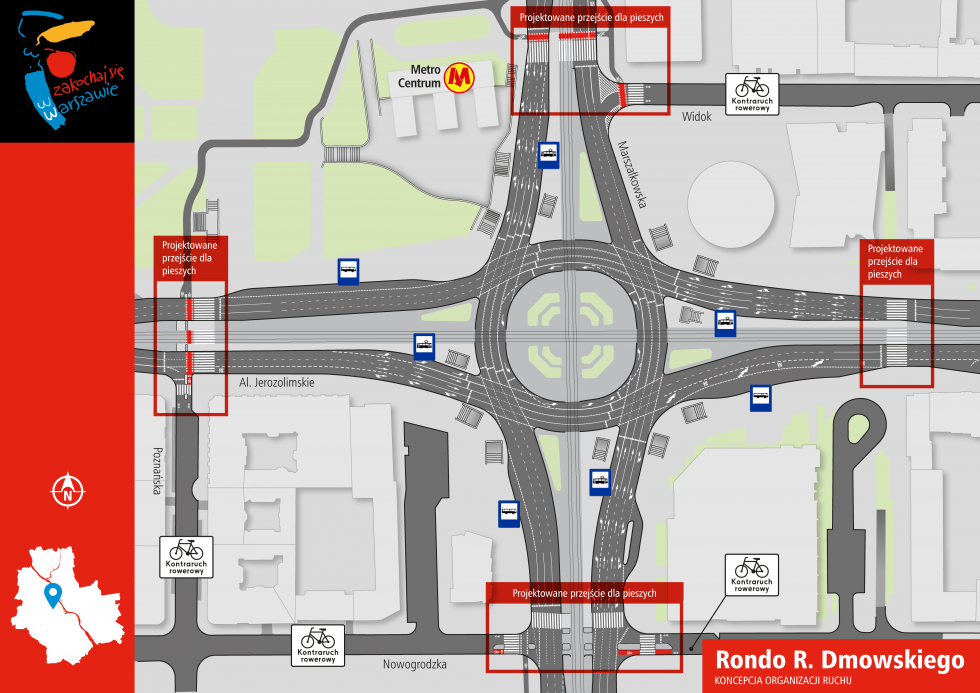 Тому, наприклад, у 2018 році було замовлено проектно-кошторисну документацію на проект, який передбачає влаштування наземних пішохідних переходів і велопереїздів на перетині магістральних вулиць в центральній частині польської столиці.