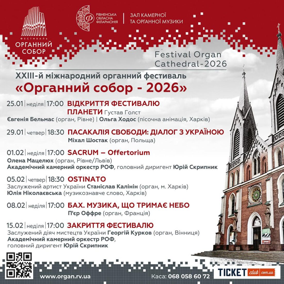 З 25 січня по 15 лютого 2026 року Зала камерної та органної музики Рівненської обласної філармонії знову стане простором великої органної музики.