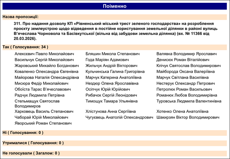 Результат голосування. Фото – rivnerada.gov.ua